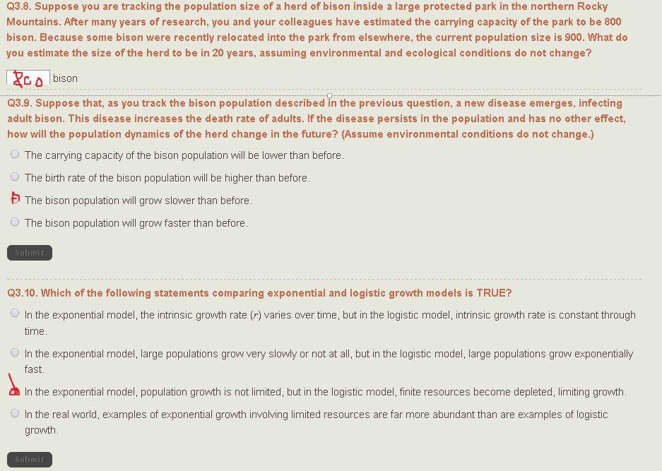 As John douma has mentioned in the comments you have to use the continuous model. 250 Population Density cellsmm 4 240 200 150 4 115 100 4 70 50 A 22 12 6 10 Years Q37. If you were modeling salamander population growth with the logistic equation you would assume that after many years the population growth rate Writ would be close to zero and the population size would not change much.
